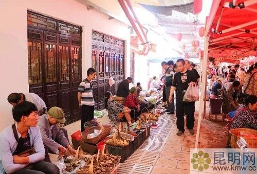 武定縣的野生菌市場設在古鎮中,進入古鎮,彝族風格的建筑比比皆是。每天的下午2點到5點是市場最熱鬧的時候,這里有村民早上采摘的新鮮野生菌。