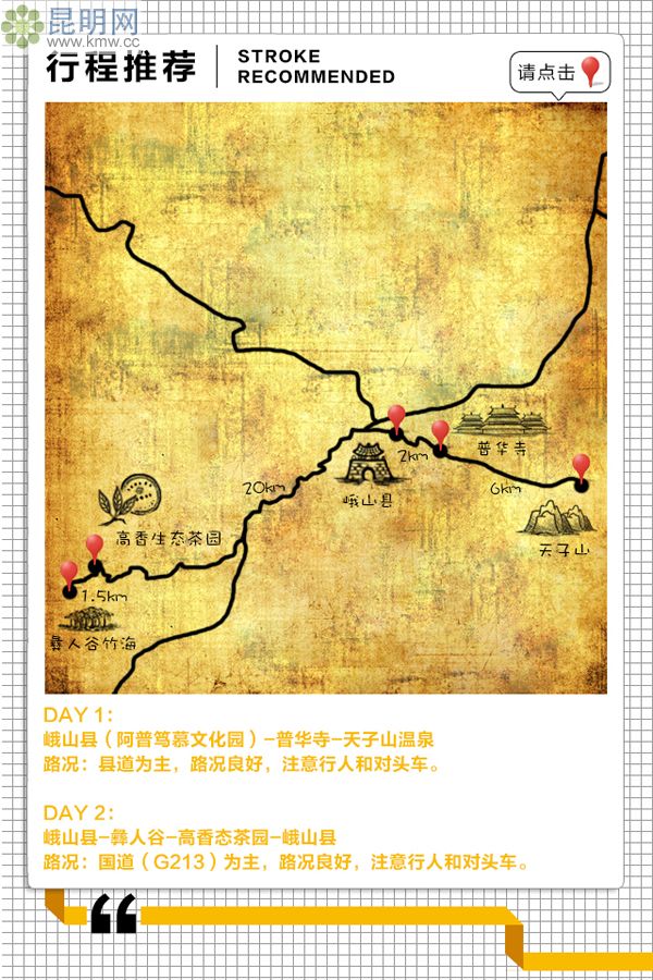峨山縣-20km-彝人谷-1.5km-高香態(tài)茶園-21km-峨山縣