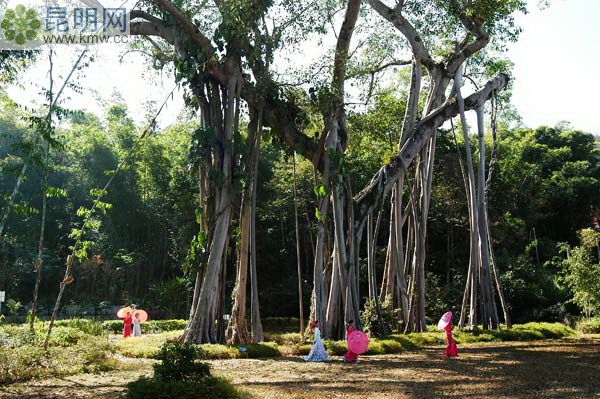 位于打洛鎮(zhèn)邊境貿(mào)易區(qū)內(nèi)的曼掌寨子旁,是一棵古榕樹,有900多年的樹齡,共有31個根立于地面,樹高70多米,樹幅面積120平方米,除主干外,還從枝干上生出許多柱根插入土中,支柱根又變成了另一棵樹,形成樹生樹,根連根的壯觀景象,成為熱帶雨林中的一大奇觀。門票:50元,電話:0691-5561504
