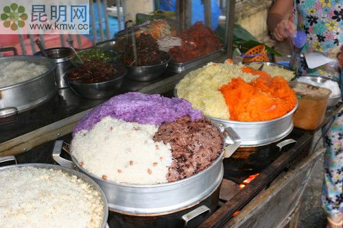 文山壯族的傳統食品,色鮮艷誘人,馨香四溢,沁人心脾,味美可口,一直盛行不衰,當地老百姓稱彩色食品。
