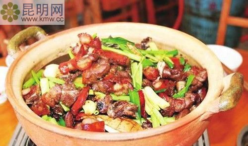 當地叫火燒狗,帶皮的最好吃,煮在湯鍋中,配上各種蔬菜和葷菜,就是一鍋美味的狗肉火鍋。