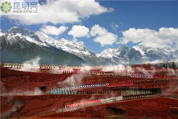 氣勢磅礴的大型實景演出。全劇分為上、中、下三篇,上篇為雪山篇,中篇為人與自然的對話,下篇為古城篇。地址:玉龍雪山干海子景區藍月谷;電話:0888-8888888;門票:190元/人。