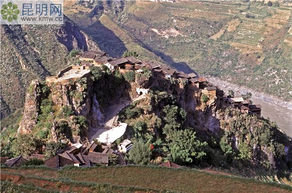 懸崖上的石頭城寶山石頭城位于麗江城北110公里的金沙江峽谷中,因百余戶人家聚居在一座獨立的蘑菇狀巨石之上而得名。從云杉坪山腳的黑白水河出發,沿盤山公路向北走,前行約100公里,就到了寶山鄉府所在地。在此下車,稍作休息,便要開始步行,沿山間小道前行約3小時,便可看到寶山石頭城。收拾一顆心,等著為建于明代巧奪天工的石城驚嘆吧。