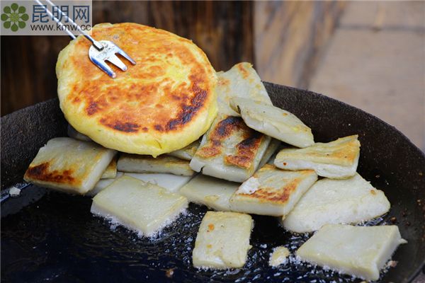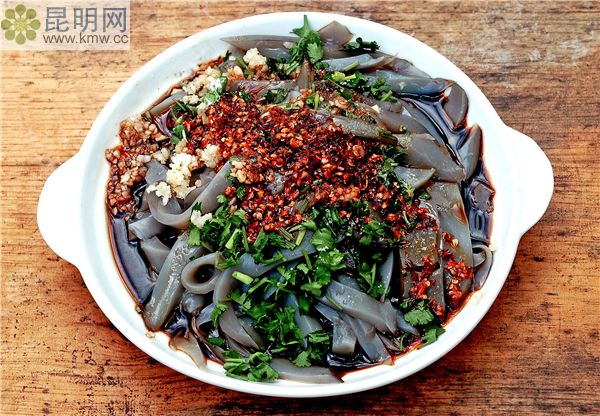 是麗江古城里的招牌食品,是麗江特有的一種豆類。夏季多涼吃,消暑開胃,冬天將涼粉片煎得兩面金黃,色香味俱佳。