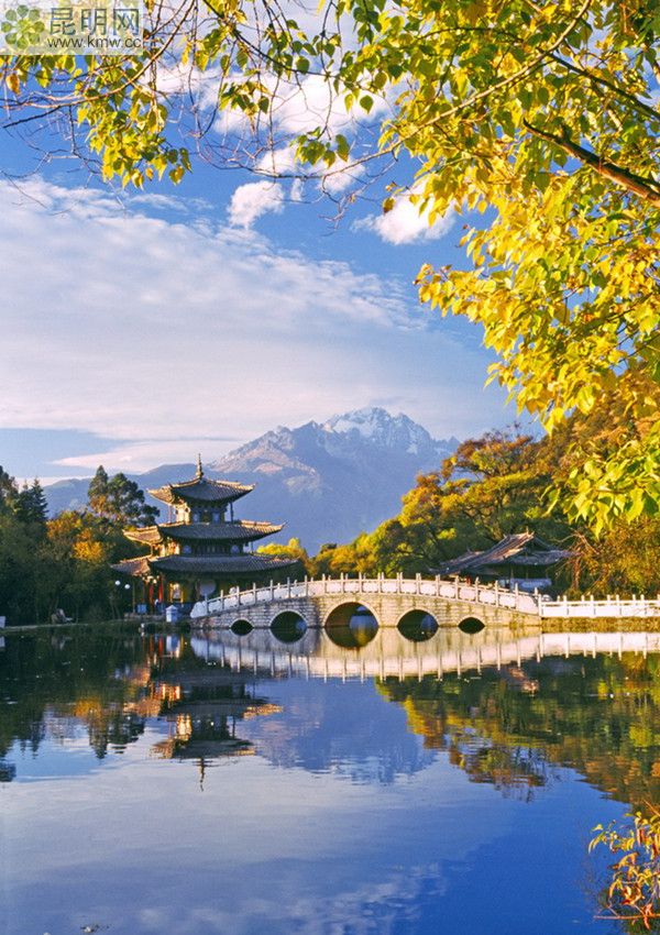 黑龍潭公園又名玉泉公園,位于古城北象山腳下,從古城四方街沿經緯縱橫的玉河溯流而上,約行一公里有一處晶瑩清澈的泉潭,即為中外聞名的黑龍潭。它是麗江的標志性景點,也是東巴文化研究所的所在地。玉龍雪山倒映在黑龍潭水面上,清澈湖水倒映著玉龍巍峨,這個畫面作為麗江的標志為很多人所熟悉。無門票,但要出示古維費收據,沒有古維費憑據的話,可以在7點之前或19點之后進入。無人看守。