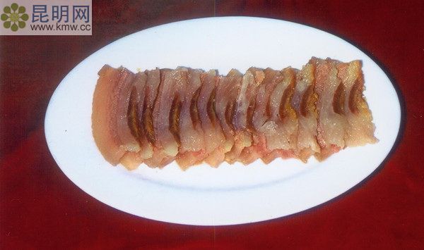琵琶肉是一種采用藏族傳統(tǒng)的腌肉方法制作的肉食。具體做法是,將豬的內臟和骨取出,保留完整軀體。待稍涼后,放入花椒、草果、食鹽等佐料(也有的加白酒),輕輕搓揉后,將其縫合,壓上石板腌制,還要用木塞或玉米芯把豬鼻塞嚴,以防蟲蛀。因其形狀像琵琶,故稱“琵琶肉”。