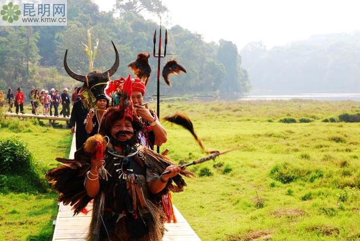 西盟縣佤族部落春節(jié)狂歡,其中有千人將佤族通天神器——木鼓——拉回佤族部落,場面震撼。期間還可以到龍?zhí)豆珗@參加尋寶活動。