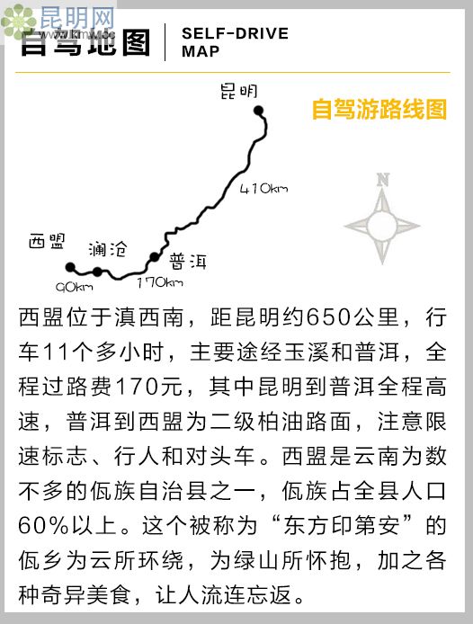 瀾滄-西盟:54公里,1個多小時。二級路,油路,路面平整,彎道坡道多,往來車少。