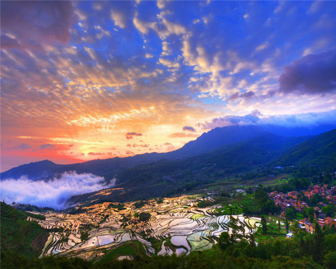 說起元陽,就不得不提元陽梯田。它是世界非物質文化遺產,也是紅河哈尼梯田的核心區域,更是哈尼人祖祖輩輩留下來的杰作。元陽梯田因地制宜,依據山勢的地形變化,不斷的開墾出大小適宜的梯田,在茫茫森林的掩映之中,成為一幅氣勢磅礴的水墨畫,構成一幅神奇壯麗的風景。