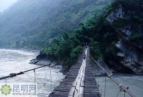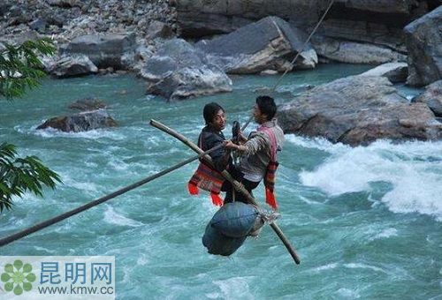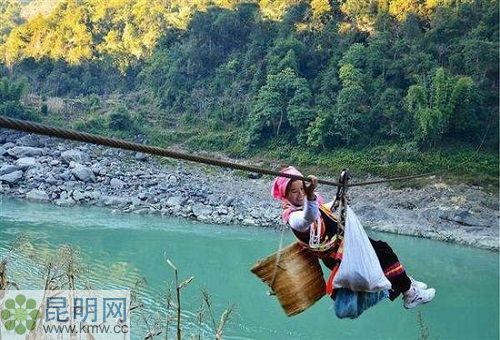 溜索大都架設(shè)在江面相對(duì)較窄的地方,怒江上的榴索有兩種:平溜和陡溜。平溜的溜索兩頭一樣高,平越大江,來(lái)往都可過(guò),但溜到江心后必須雙臂用勁,攀 到對(duì)岸。陡溜有一定的傾斜度,一頭高,一頭低,自然滑向?qū)Π叮州p快。古老的溜索,還記錄著獨(dú)龍族捍衛(wèi)祖國(guó)和民族尊嚴(yán),與帝國(guó)主義侵略者浴血奮斗的歷史。