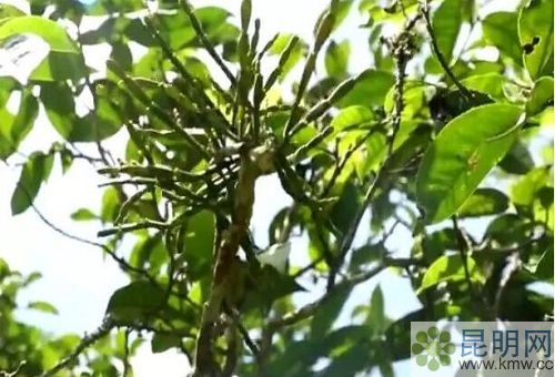云南省普洱景邁山,除了觀萬畝茶園,品千年茶湯外,還有一大景觀就是吸收了千年古茶靈氣與精華,藥用價值豐富的古茶樹上的寄生植物“螃蟹腳”。什么是螃蟹腳?螃蟹腳又名:楓香槲寄生,扁枝槲寄生,桑寄生科、槲寄生屬植物螃蟹腳是一種寄生在樹齡較高的喬木茶樹上的寄生物。螃蟹腳為綠色(采摘曬干后變成棕黃色),形狀像小珊瑚,帶毫,如蟹足,故被當(dāng)?shù)厝朔Q為“螃蟹腳”。