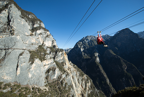 而香格里拉巴拉格宗國家級風景名勝區內的高空滑索,更被稱為是目前全云南最長、最驚險、最刺激的滑索項目。全長425米,高空落差達到800米從起點滑到終點只需要45秒左右,平均速度達9.44米/秒,最高速度近12米/秒。
