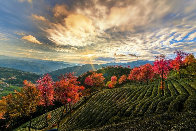 無量山大山深處這個叫“櫻花谷”的地方,她的本名叫做“蛇腰箐”,一個先輩們叫了千百年的、甚為曼妙的名字。后來,兩位愛茶的臺灣茶商來到此地種茶,為遮陰,在種下茶樹的同時,還種下了一株株冬櫻花。櫻花樹長成,臘月開花,恣意盎然,與碧綠整齊的茶園相襯,形成了櫻花盛景,漸漸的,眾人就把這個地方稱作“櫻花谷”了。而今,無量山茶園的櫻花開了,在寒冬臘月時分,開遍了山谷,引來無數攝影高手爭相“捕風捉影”,無量山也以別樣風情被世人重新認識。